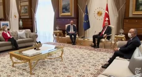 2021年4月,当时的欧盟委员会主席冯德莱恩和欧盟理事会主席米歇尔在访问土耳其期间,当时各种媒体都在,在各种闪光灯以及照相机的咔嚓咔嚓之下,土耳其只准备了两把椅子,一把椅子给了土耳其总统埃尔多安,一把椅子给了米歇尔,而冯德莱恩没有椅子。