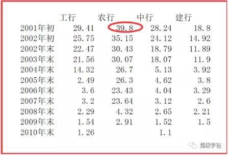 2001年中国的经济存在巨大问题:那一年,中国的国有企业还挣扎在巨额亏损之中;那一年,四大行的不良贷款率达到了顶峰(农行高达惊人的39.8%)。