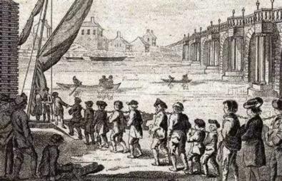英国的罪犯被押上船流放海外。