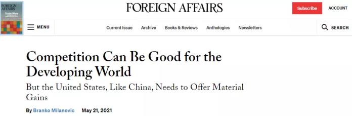 《外交》杂志我也不多介绍了,美国外交关系协会主办的杂志,我在历次文章中多次引用它的观点,但凡这本杂志出的任何观点都应该得到高度重视,最近杂志发了一篇《竞争对发展中国家有利,但美国和中国一样,需要提供实质性收益》。