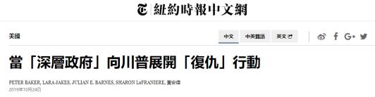 “但过去三周以来,深层政府以过去和现在的一些真切存在的政府官员的形式,从暗处浮现出来,他们反抗了白宫阻止与众议院弹劾调查人员合作的企图,他们提供的证据,在很大程度上证实了至今保持匿名的检举人的说法。”