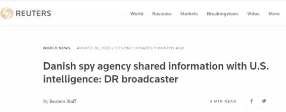 很明显,这是2020年8月28日的消息,就已经说了:丹麦情报机构和美国情报部门共享信息。