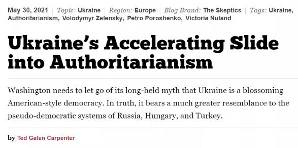 美国《国家利益》杂志最近发了一篇诡异的文章《乌克兰加速滑向威权主义》,文章说: