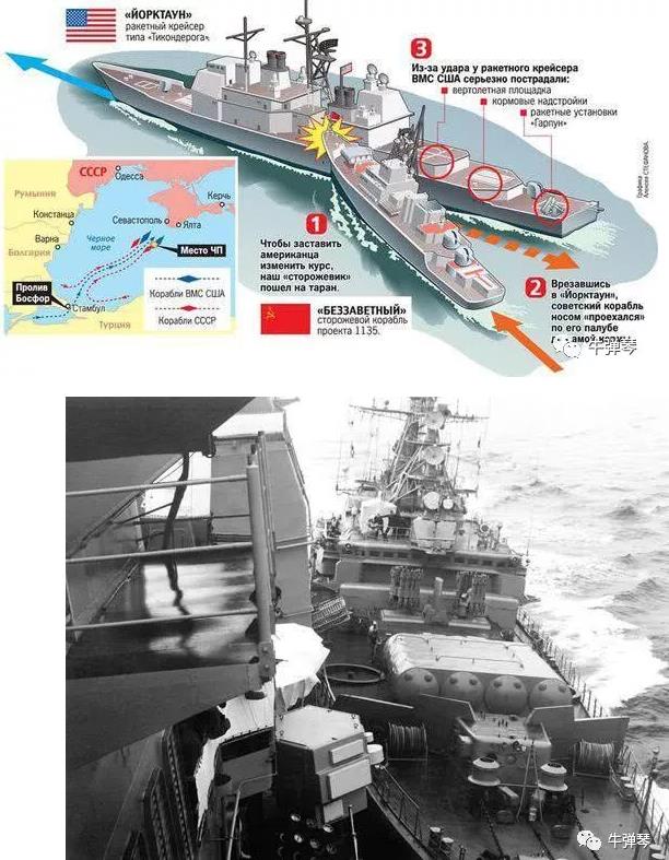 当时,美国海军约克城号巡洋舰和卡隆号驱逐舰闯入黑海,宣示所谓的自由航行权,这遭到苏联海军的强烈抗议。在警告无果后,两艘苏联战舰,随即果断撞向美舰!