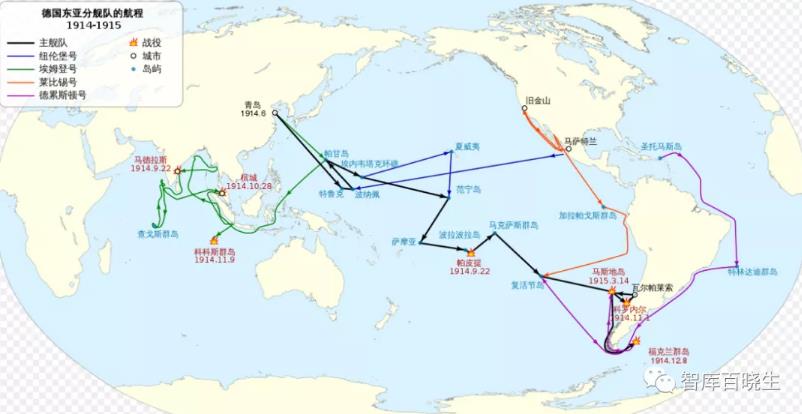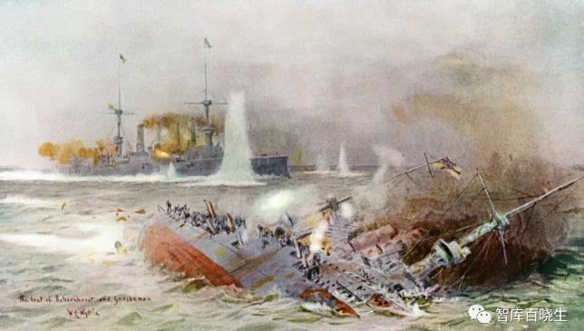 1914年12月,福克兰群岛海战爆发,英军几乎全歼了德军东亚分舰队。