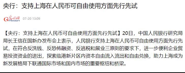 也就是说,人民币自由兑换试点可能快了。