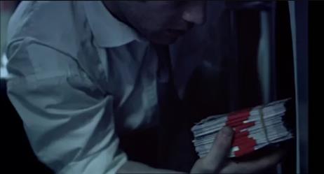他来到保险柜前,把那张纸粘在柜门上,把手从黑洞里伸进去,不费吹灰之力便拿出了一摞又一摞的钞票。