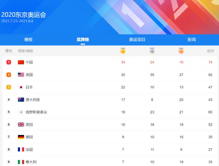 然而到了2021年东京奥运会,美国人发现“奖牌榜”都未必撑得住,甚至开始按奖牌单项排三个榜:金牌中国第一,但是银牌、铜牌美国第一。