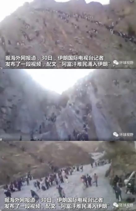 视频中,大量难民开始涌向伊朗,成群结队的翻越陡峭山崖,有的则站在山脚。山崖很陡,如果没站稳,估计得一路滚到底。