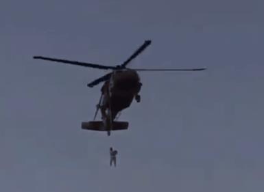 实际上,这是塔利班人员在利用直升机安装旗帜。