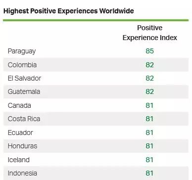 自2006年至今,盖洛普每年都会发布《全球情绪报告》(Global Emotions Report)来衡量哪些国家幸福感最强。2018年最新的报告显示,最幸福的十个国家中,拉美国家占了6个,这次“难民大篷车”的主力洪都拉斯、危地马拉和萨尔瓦多都赫然在列。