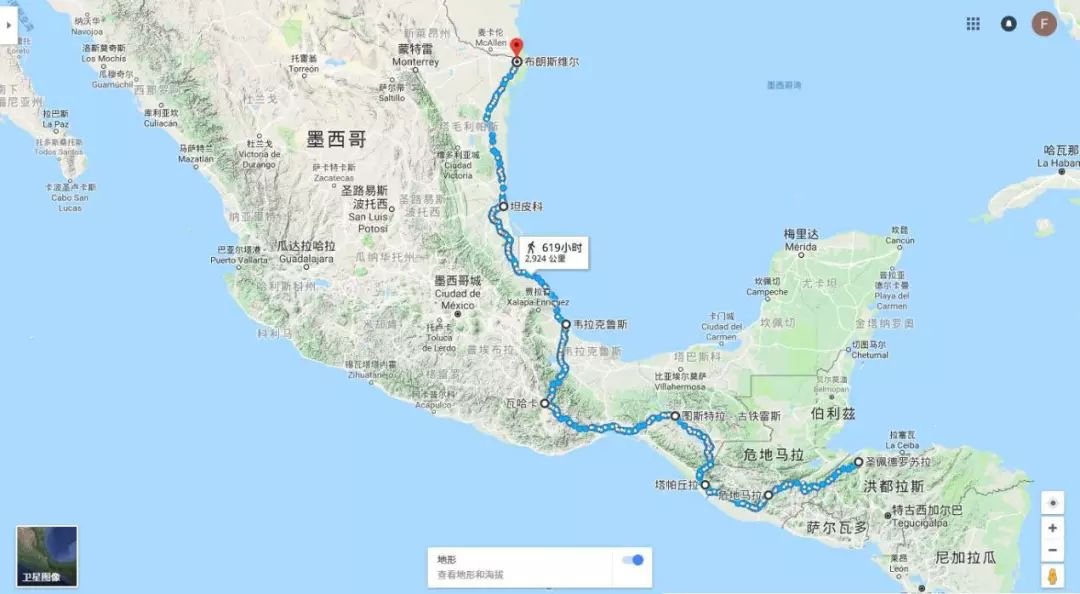 (“难民大篷车”的预计路线,来源:Google Map)