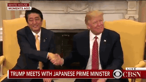 前年美国大选,特朗普意外当选,安倍二话不说,挂掉问候电话就立刻飞赴纽约,前往珠光宝气的特朗普大厦,没有任何外交礼遇,就为了和特朗普匆匆见上一面。