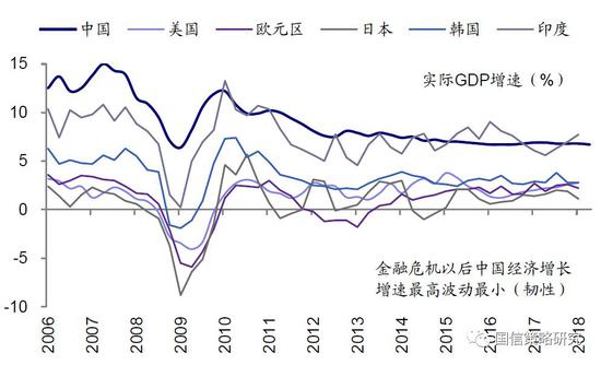 金融危机以后中国经济在全球的表现都是出色的,经济增速高且波动小(GDP波动小到基本已经不再需要宏观经济预测了),我们是主要经济体中少有的没有出现过经济衰退的国家。