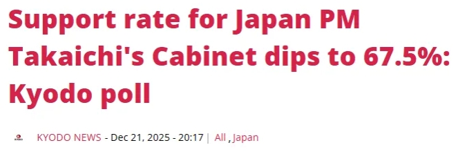 在国内方面,在野党步步紧逼、自民党内部也开始分裂,一些派系对她的激进言行表示了强烈不满;我就举一个例子,那个号称“对华最强硬”的日本前驻华大使垂秀夫,日前就公开批评高市,将一些不能说的话说出来,是个“蠢女人”!日本民众也是三天两头举行抗议,要求高市收回发言,即刻下台。至于高市那个薛定谔的支持率,右翼媒体如《朝日新闻》仍在宣称她的支持率处于高位;但共同社发布的最新民调显示,已经开始明显下滑,降至67.5%;如果日本经济衰退情况加剧、高市早苗的经济政策失败,这个支持率下降将会更加明显。