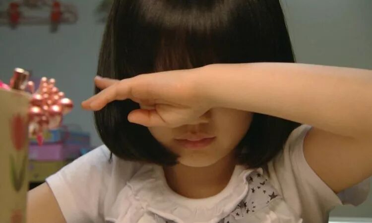 【3】一个小女孩,被继母打成熊猫眼,双眼只能咪成一条缝继续行走。
