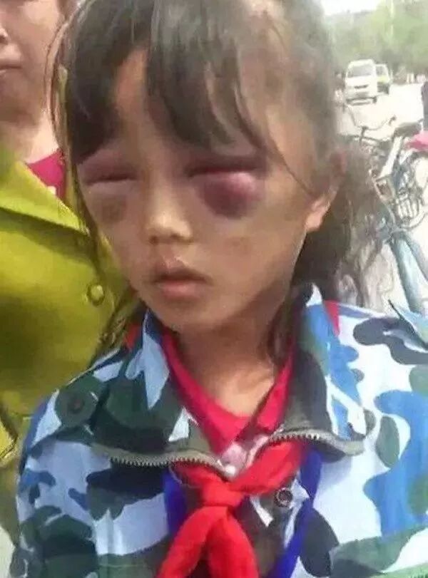 大耳刮子抽,直接抽到地上,人在地上打滚;操起扫帚,往肩背上猛抽;死死抓着头发,就像抓着一个吊死鬼,头往地板上撞,砰砰直响;脚踹,一脚飞过去,坐在椅子上的小女孩瞬间就飞到地上。