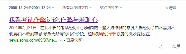 百度上搜索考试作弊,显示有754万条信息。最早的一篇来源于中国青年报2001年发表的【我看考试作弊:作弊与羞耻心】。