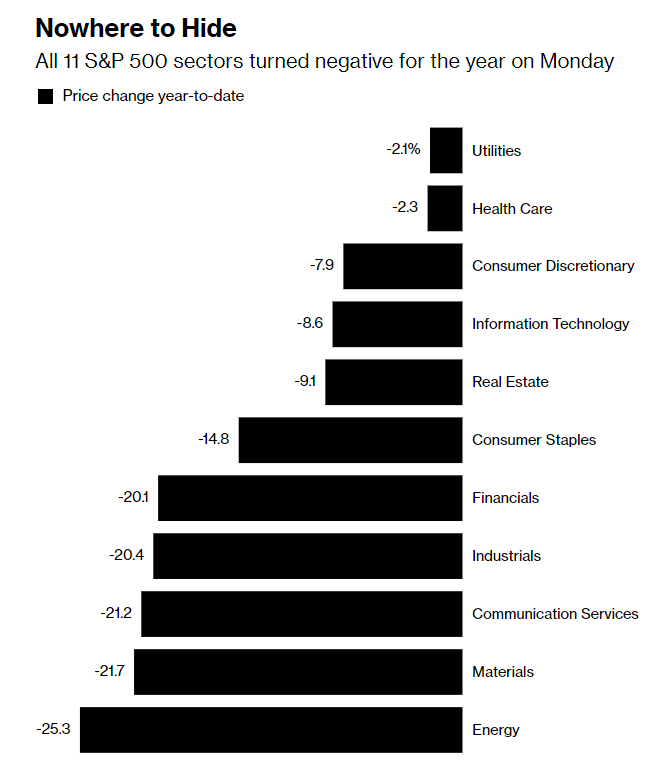 所有11大板块全线收跌,并在12月、第四季度和全年集体转跌。