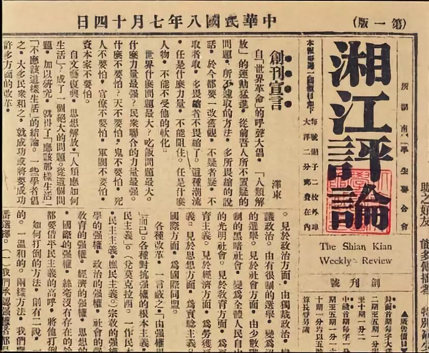 《湘江评论》创刊号寄到北京后,李大钊认为这是全国最有份量、见解最深的刊物。