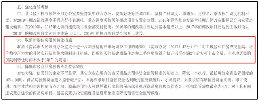 12月18日,菏泽房管局发布文件,取消了2017年11月出台的“限售政策”。