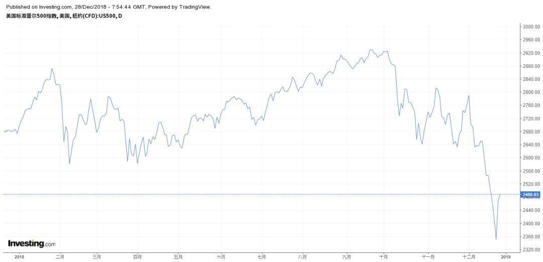 平安夜当天,财长努钦给美国六大行的一把手打了通电话,还跟美国的“跌势救火队”开了电话会议,本意是出马安抚,但市场不买账不说,还因政治风险担惊受怕,平安夜三大股指暴跌逾2%,创史上最惨平安夜,也彻底抹去一年辛辛苦苦攒下来的涨幅。最爱股市的特朗普赶紧在平安夜讲话公开表示,现在是买入美股的大好时机。