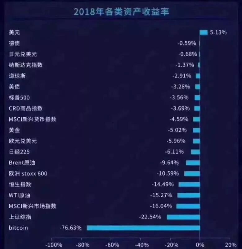 如果人们退出股市、楼市,转向其他各类投资方式,情况如何呢?2018年市场给我们的回馈依然是悲观的。
