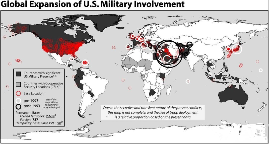 当然了,美国在海外建立那么多的军事基地还有其它的目的。