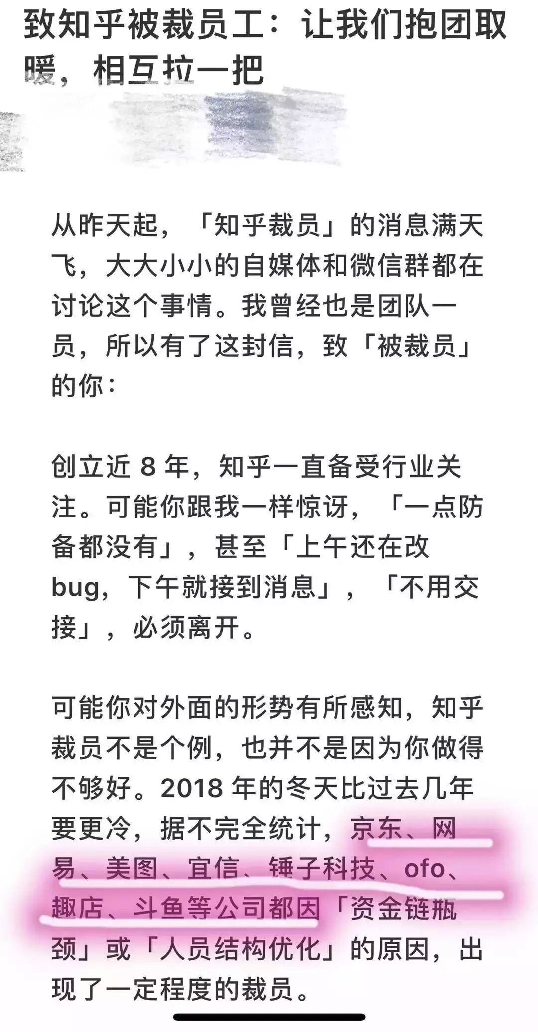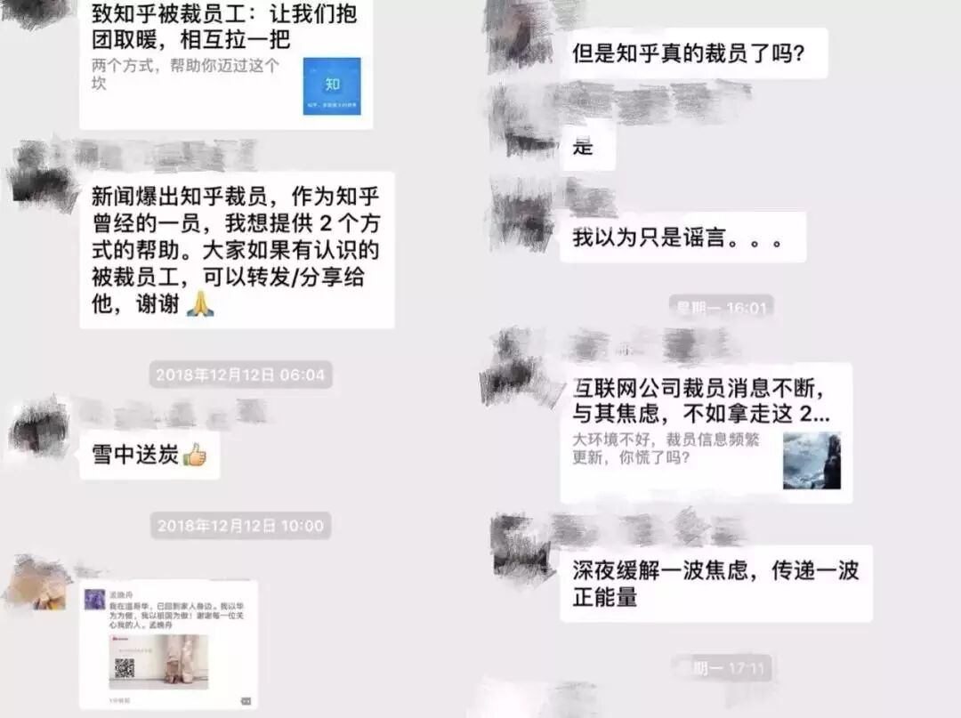 另一个专门讨论招聘的群里,有前知乎离职员工在召集知乎被裁员工抱团取暖。