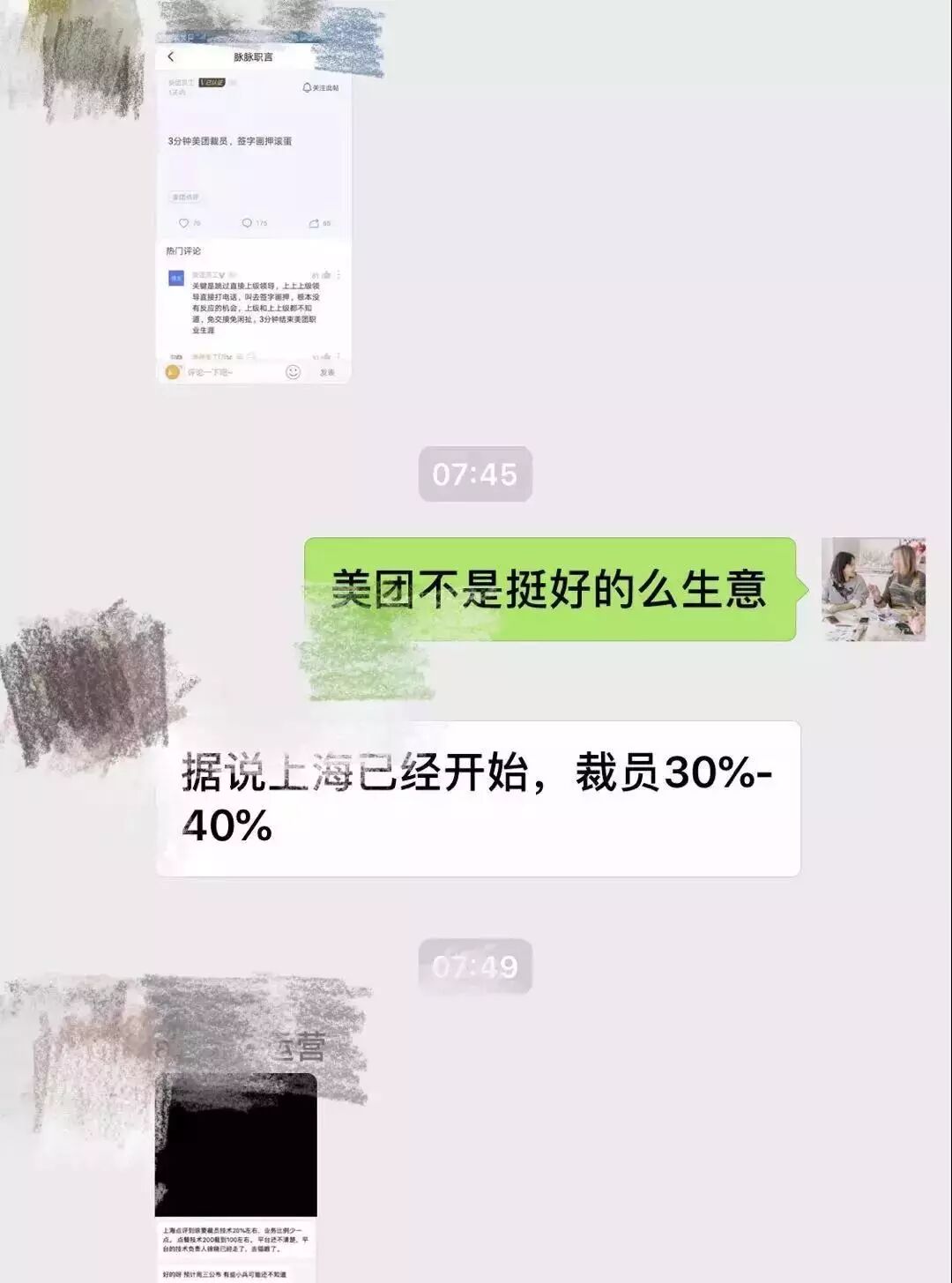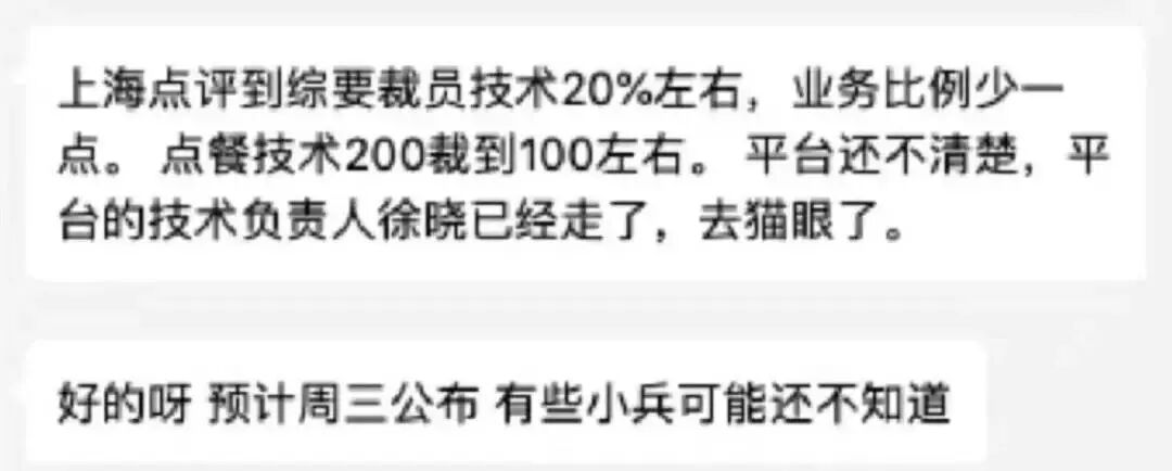 “美团裁员了,据说周三开始。”