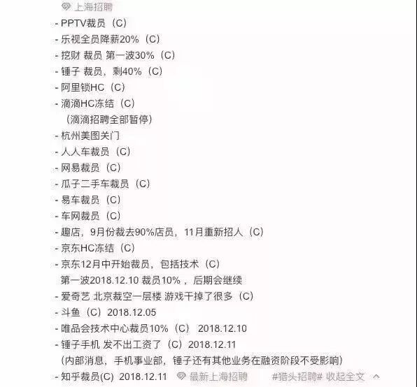 紧接着另一同事说,上海已经开始,裁员30%-40%。