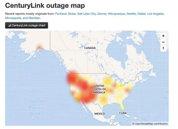 CenturyLink的断网导致美国很多地区用户的互联网服务中断,其中包括丹佛、波特兰、洛杉矶、达拉斯、盐湖城、芝加哥、菲尼克斯和辛辛那提等大城市的用户。