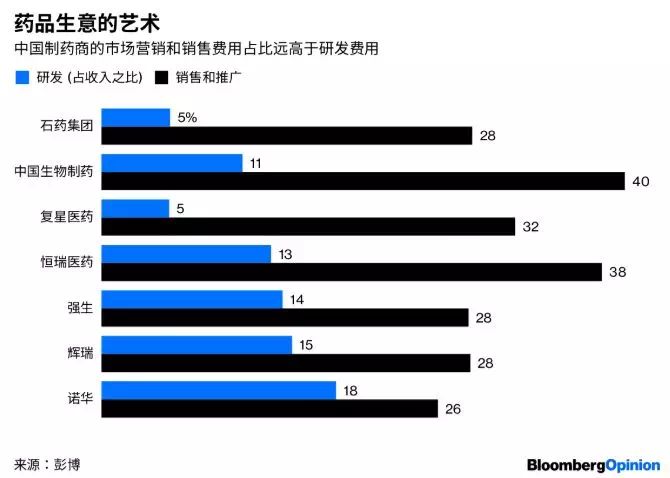 多年来,中国最大的制药商们以80%-90%的毛利率销售低成本仿制药,而不怎么考虑研发。制药公司把多达三分之一的收入花在了销售和推广上,形成灰色地带。