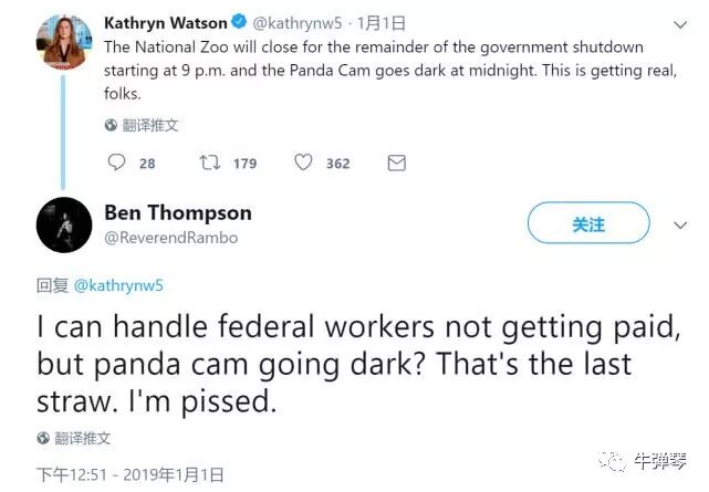 一位可能是美国公务员的网友感叹:“我可以应付得了联邦工作人员拿不到工资,但熊猫直播镜头被掐?这是压垮我的最后一根稻草。我很生气。”