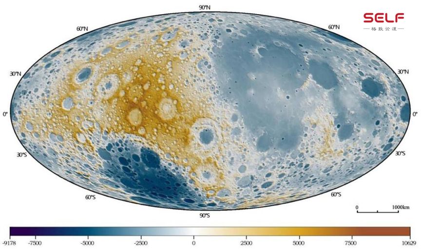 4. 南极-艾特肯盆地高程原图来自:Potter, R. W. K., G. S. Collins, W. S. Kiefer, P. J. McGovern, and D. A. Kring (2012), Constraining the size of the South Pole-Aitken basin impact, Icarus, 220, 730–743, doi:10.1016/j.icarus.2012.05.032.