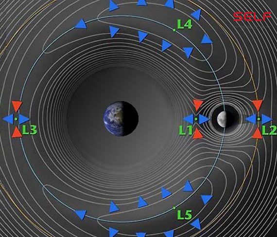 这次我们就要到月球的背面,有一个着陆器和月球车着陆在月球的背面,还有一条飞船叫中继星,我们要飞到地球--月球的拉格朗日2点,是在月球背面的后面,离月球大约是6.5万公里,就是图上最旁边的L2这个点。我们的中继星将要飞到那儿去,因为那里面对的是月球的背面,同时也要看到地球。我们“嫦娥五号”的“重返大气层”试验,已经有一个中继星飞过去了,飞到了地球-月球的L2点。