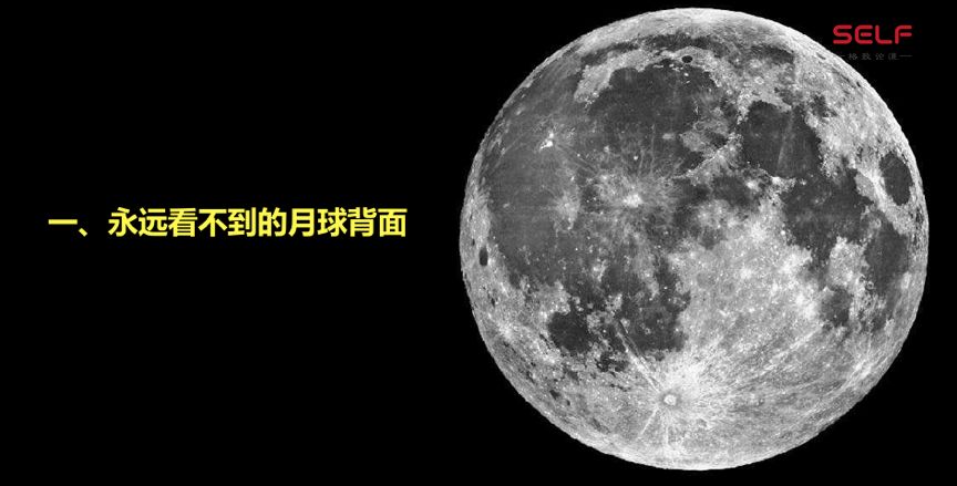 很奇怪的一点,我们在地球上看到的月球永远是这半个月亮,哪怕是几亿年以前的恐龙,它们看到的月亮也是这半个月亮,我们从来都看不到那半边。大家会问,月亮是有自转的,它转一圈我们在地球上不就可以看见它了吗?就是看不到,为什么?