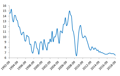 2019年美国经济面临下行拐点,减税效应减弱,美联储不断加息导致社会有效需求减弱。