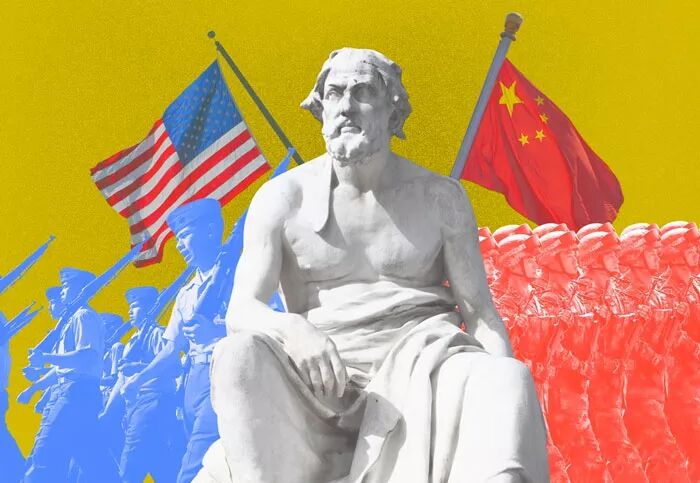 公元前5世纪,希腊历史学家修昔底德,在研究老牌帝国斯巴达和新兴强国雅典的战争后,得出一个重要结论:一个新崛起的大国必然要挑战现存大国,而现存大国也必然来回应这种威胁,这样战争变得不可避免。