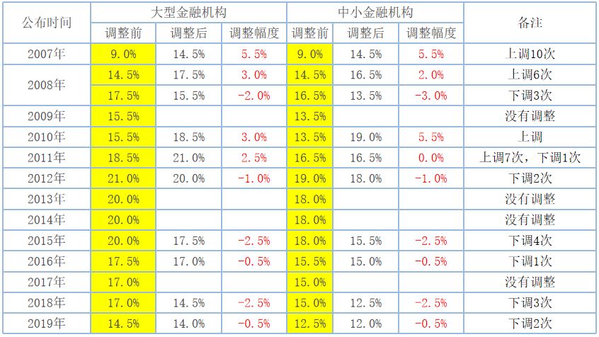 我们来看看近十年来的准备金率调整情况: