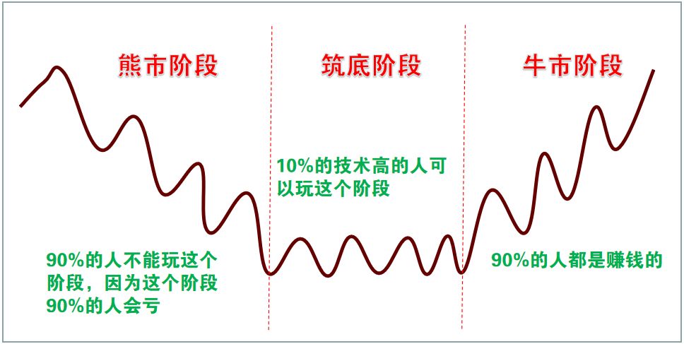 在熊市阶段,我的建议就是:任何人都不能玩,因为那个阶段就是机构收割散户、机构收割机构的阶段——这个阶段几乎是没有什么人能盈利的。