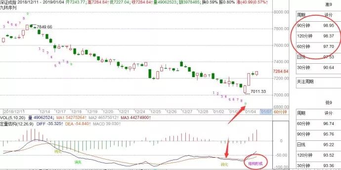 注意60分钟、90分钟、120分钟的高9,目前这三个周期都是序列97分以上的高分周期。