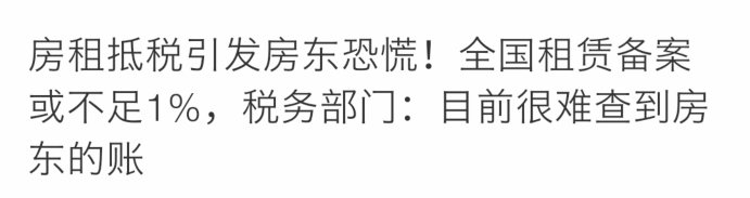 最后和大家分享一个我看到的信息,说全国租赁备案或不足1%,税务部门表示,目前很难查到房东的帐