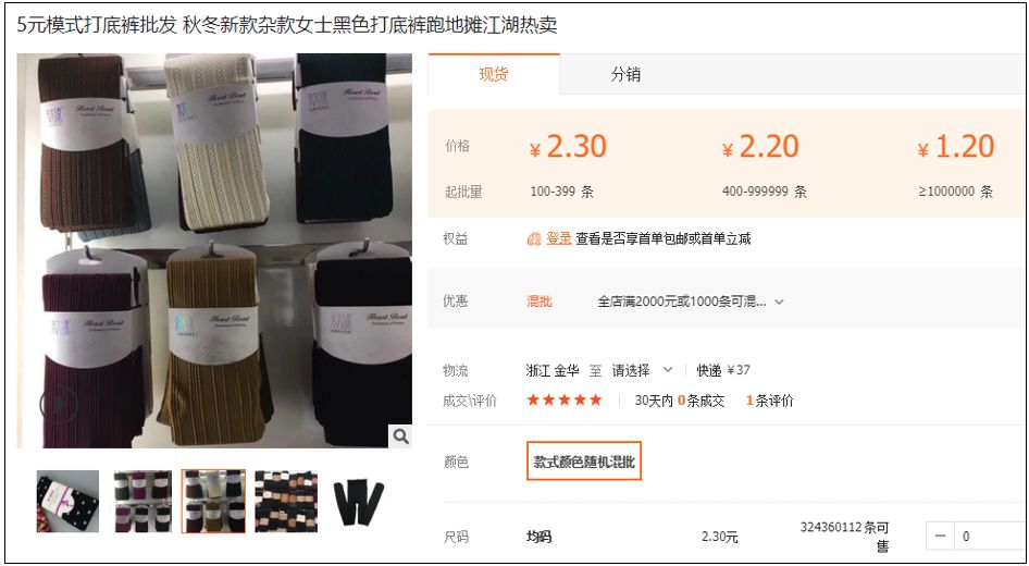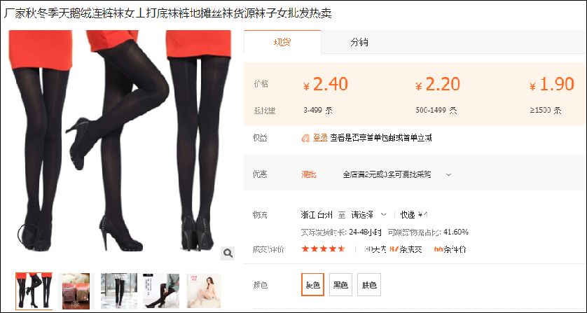 大家看看,这个是我在阿里巴巴上按照价格找的:一次性批发1500条连裤袜,每条最低价仅为1.9元!