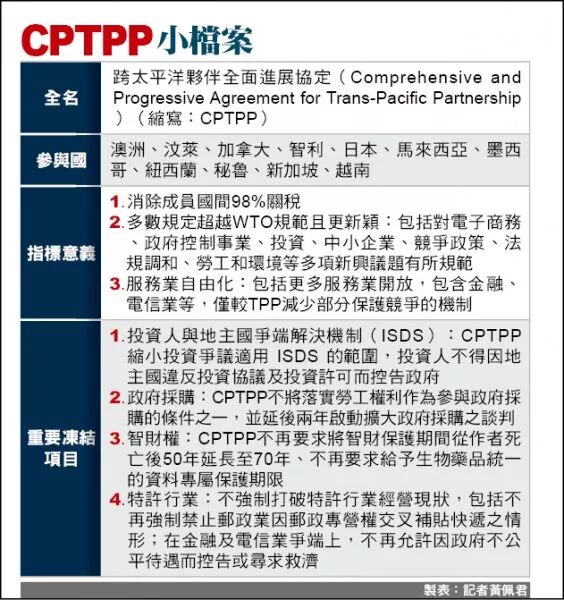 安倍的日本政府仅用了一年多时间,就和其余10个成员国成功复活了TPP。相比原先的“跨太平洋伙伴关系协定”(TPP),CPTPP的最大区别在于冻结了原协定中关于知识产权保护、投资争端、金融服务开放、环境保护、政府采购等内容的20项条款。这就让CPTPP显得是一个妥协的不完全版本。
