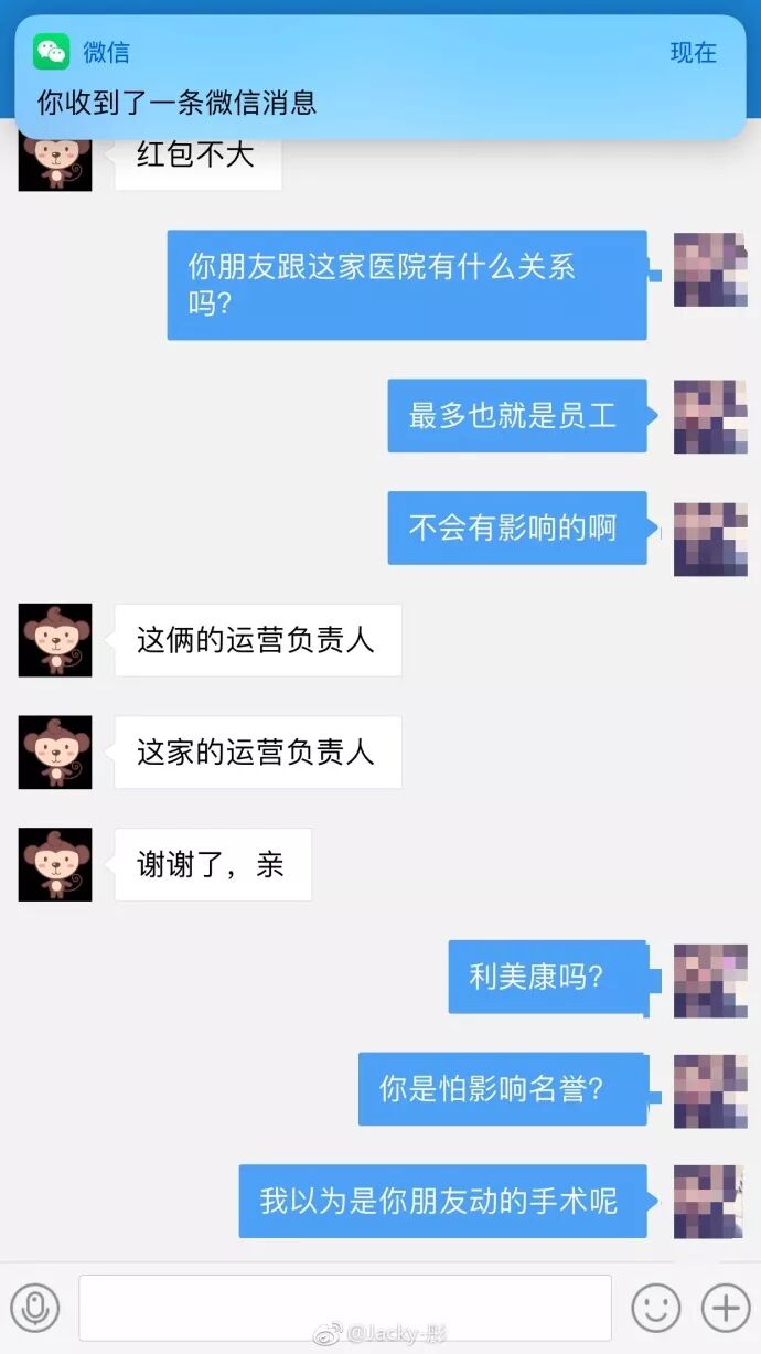 当夏丽莎的姐姐就此事求助于社交媒体时,有自称利美康运营负责人的网络公关人员。