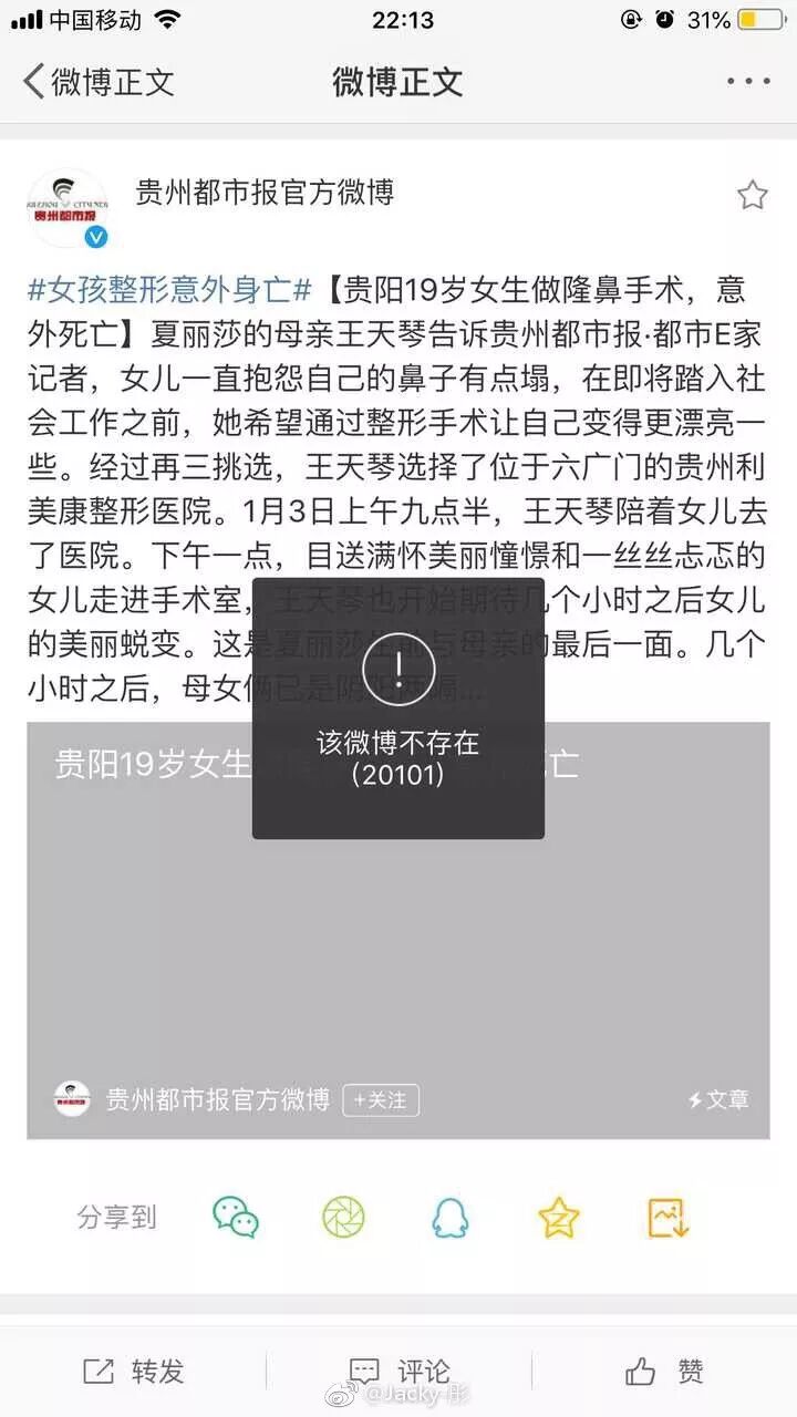 第一个报道这件事的贵州都市报,在全平台删除了关于这新闻的报道,而我们目前看到的。