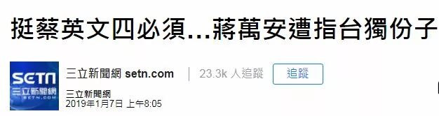 最近,蔡英文不断攻击“九二共识”和“一国两制”,作为“台独”她干出这种事我们都不意外,但作为蒋介石的孙子,曾经的国家元首之后,如果也这样那就是辱没祖宗了。然而,蒋介石曾孙、国民党“立委”蒋万安1月6日在节目中公开支持蔡英文,声称“四个必须都是对的”。他的这番言论,立刻引发蓝营网友的反弹,有网友怼他说:“爷爷知道吗?”“你爷爷的棺材板都快压不住了”,“听爷爷的话,别让他受伤”,也有人说他令蒋家蒙羞!更有人说,他是国民党罪人,还有人反讽称,他不加入民进党太可惜了。