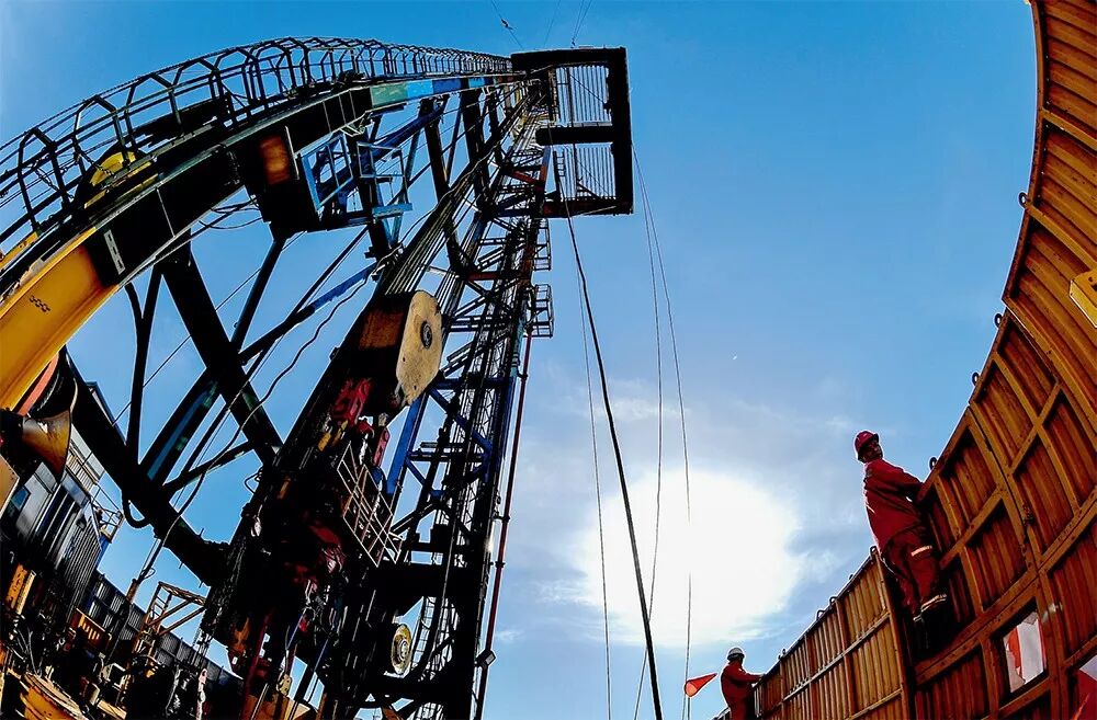 ▲ 工作人员在“地壳一号”万米钻机的钻井平台上作业 许畅摄