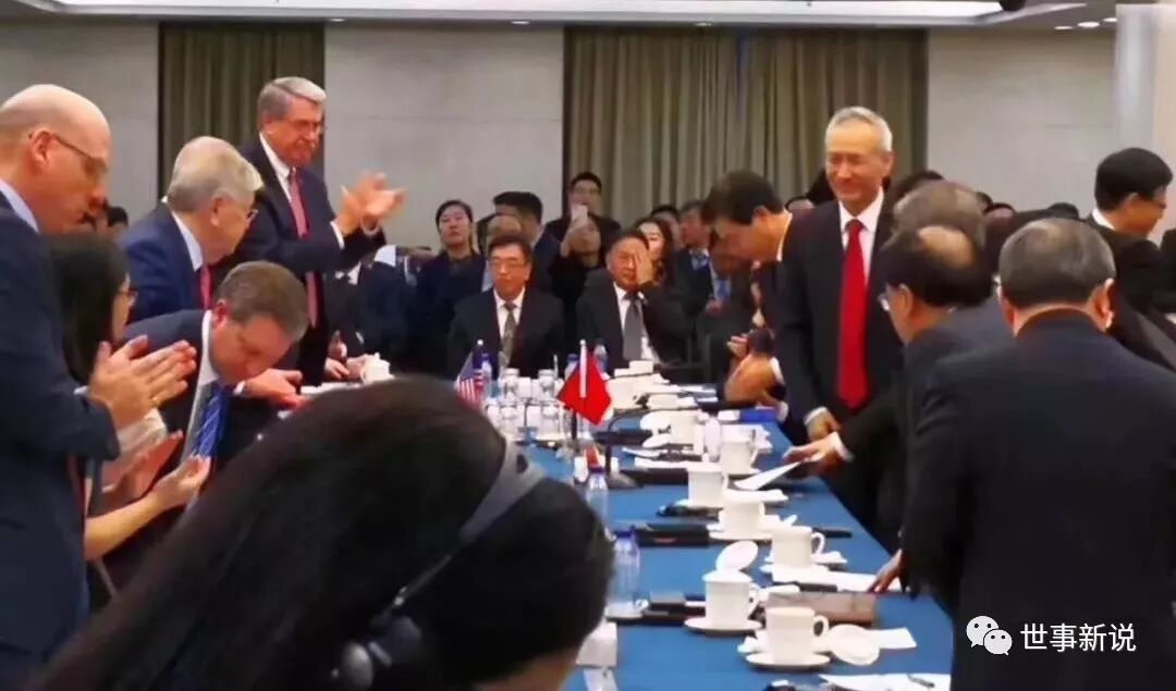 从上面这张图片可以看出,中央政治局委员、国务院副总理、中美经贸磋商首席代表出席了这次中美副部长级磋商。刘鹤副总理现身会场本身,传达了一个极为重要的信息:中方极为重视这次磋商,对会谈取得突破性进展充满了诚意。因为按照正常的外交礼仪,刘鹤副总理最多只会在会客室礼节性接待一下美方代表团主要成员,而不会出现在副部长级磋商的会谈现场。通常情况下,这个级别的工作磋商,中方商务部长出面接待一下,已经是非常给面子的事。